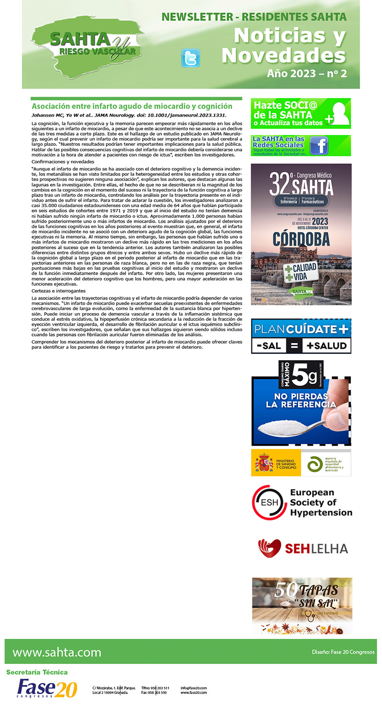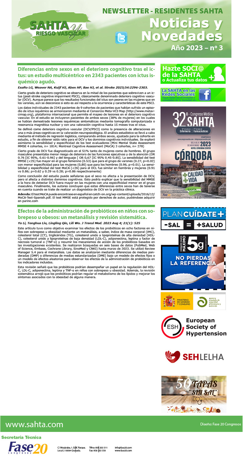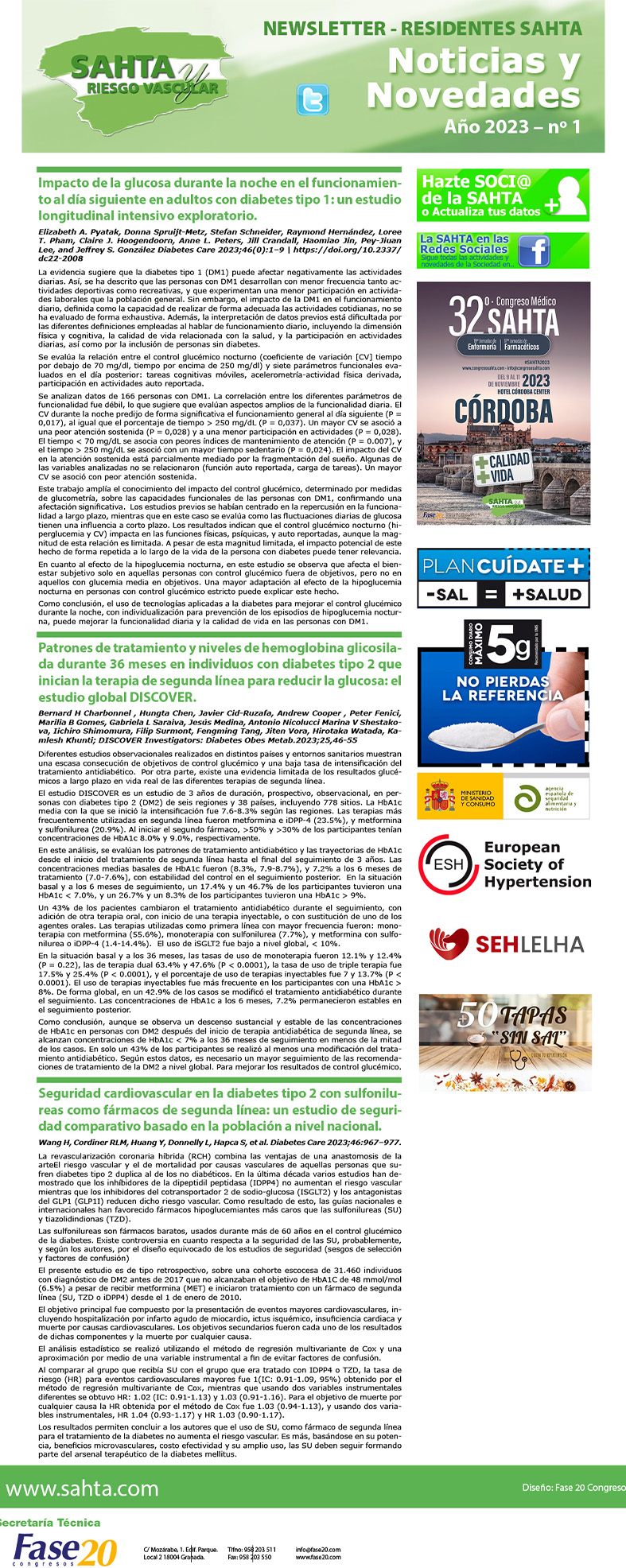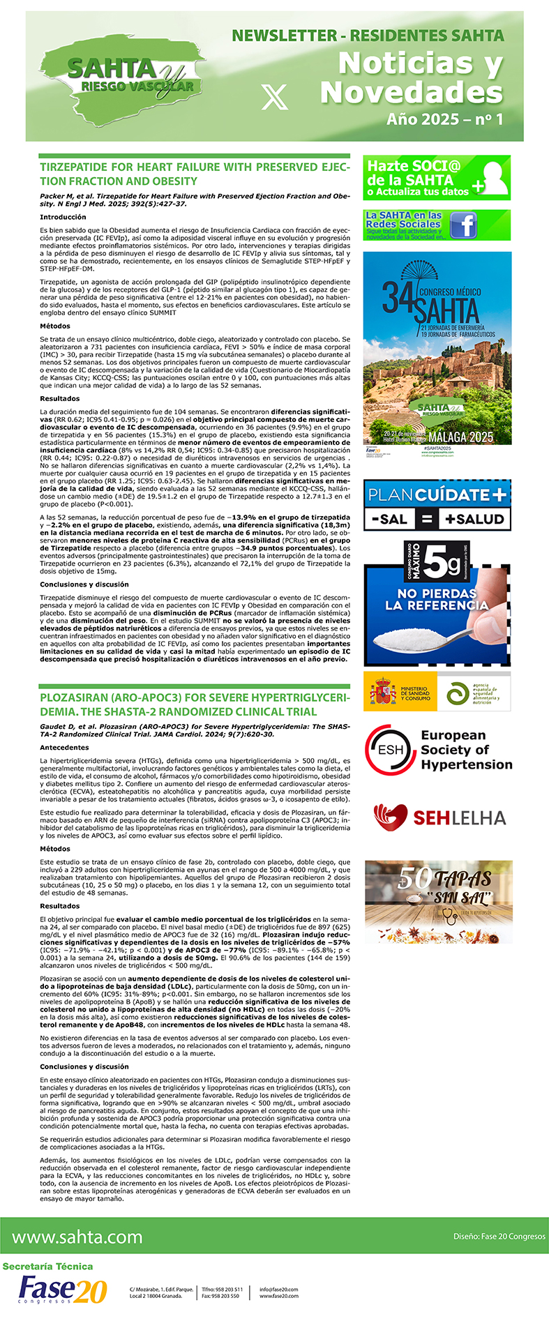 NEWSLETTER SAHTA AL DÍA